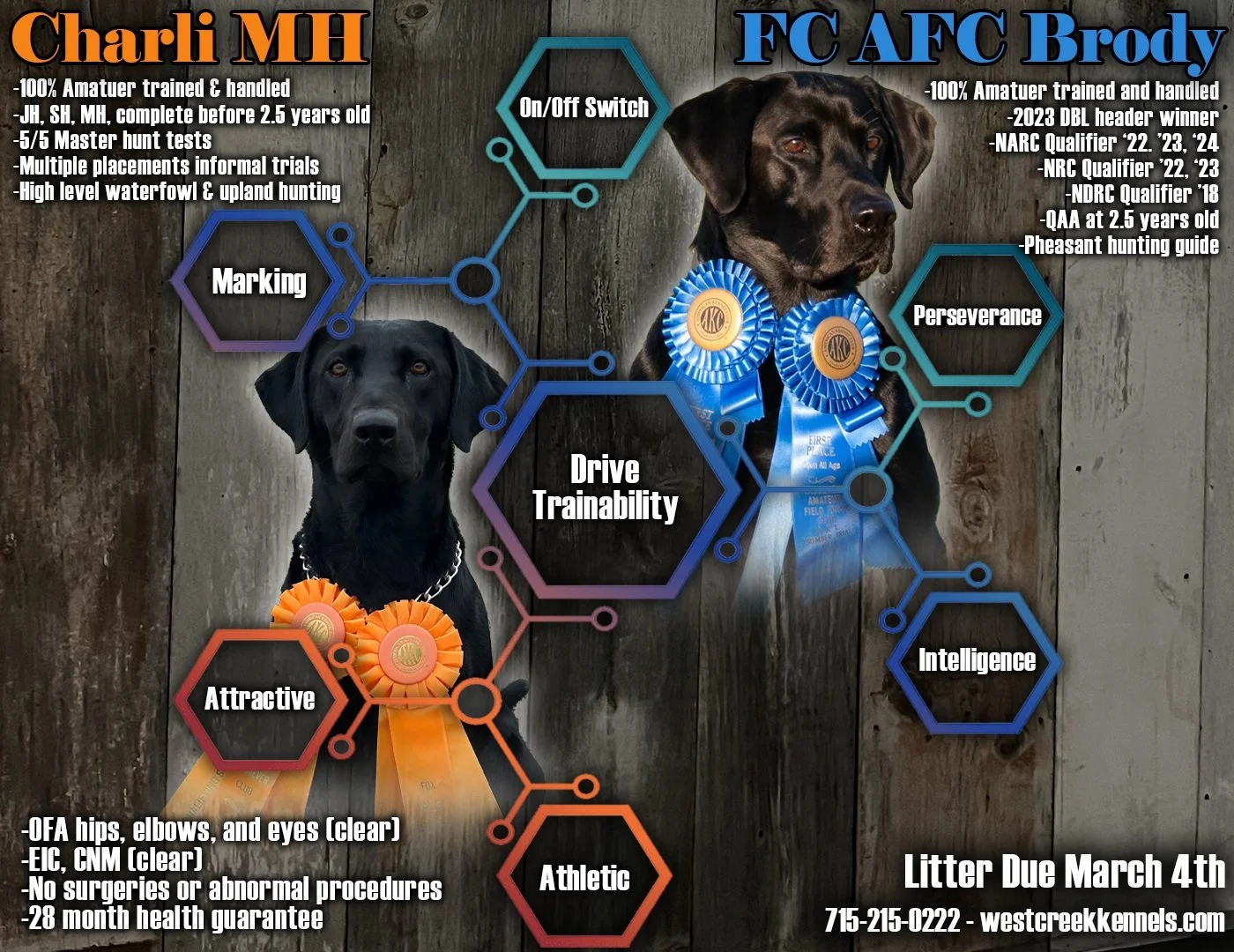WCF Chamberlain Chari: WCF is acronym for West Creek Farms, where we live and share our life with family and friends. Chamberlain is a town in South Dakota where I shot my first pheasant. My dad took many of us out there to share in the “promised land of pheasants!” I still have to correct people on her gender, as she truly is a tom boy with a name like Charli, and an alpha dog personality.